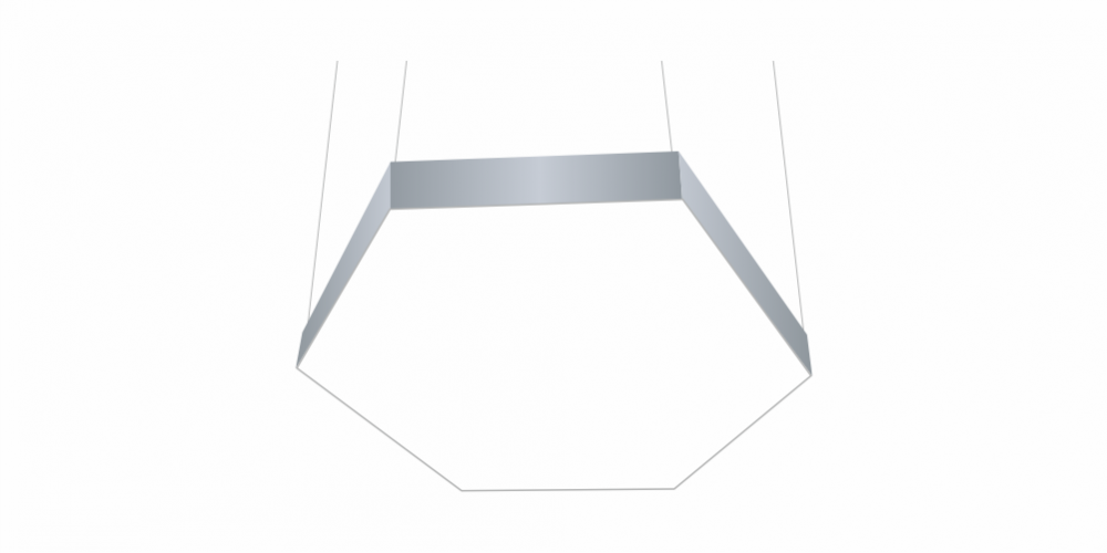 Светодиодный светильник в виде гексагона LiNE-PRO мощностью 240 Вт  1500  мм изготовлен из алюминиевого основания, с установленными на него светодиодными модулями. Возможна различная цветовая температура - 3000К, 4000К, 5000К, 6000К. Боковины могут быть изготовлены из плотного ПВХ различного цвета, на выбор или светотехнического акрила и выполнять функцию рассеивателя. Блок питания внутри корпуса светильника. Монтаж на тросовых подвесах или непосредственно к потолку или стене.