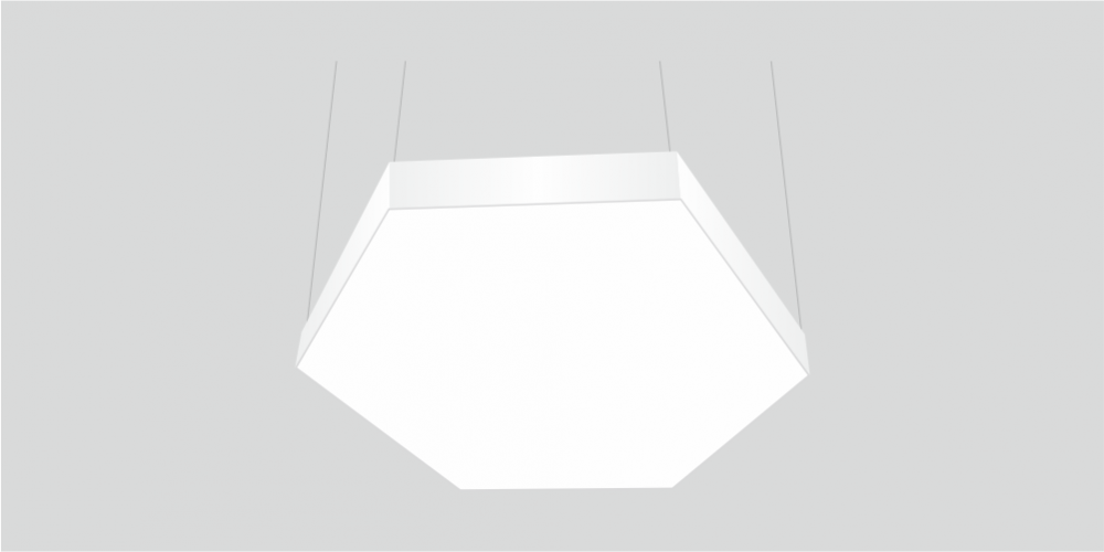 Светодиодный светильник в виде гексагона LiNE-PRO мощностью 110 Вт 900 мм изготовлен из алюминиевого основания, с установленными на него светодиодными модулями. Возможна различная цветовая температура - 3000К, 4000К, 5000К, 6000К. Боковины могут быть изготовлены из плотного ПВХ различного цвета, на выбор или светотехнического акрила и выполнять функцию рассеивателя. Блок питания внутри корпуса светильника. Монтаж на тросовых подвесах или непосредственно к потолку или стене.