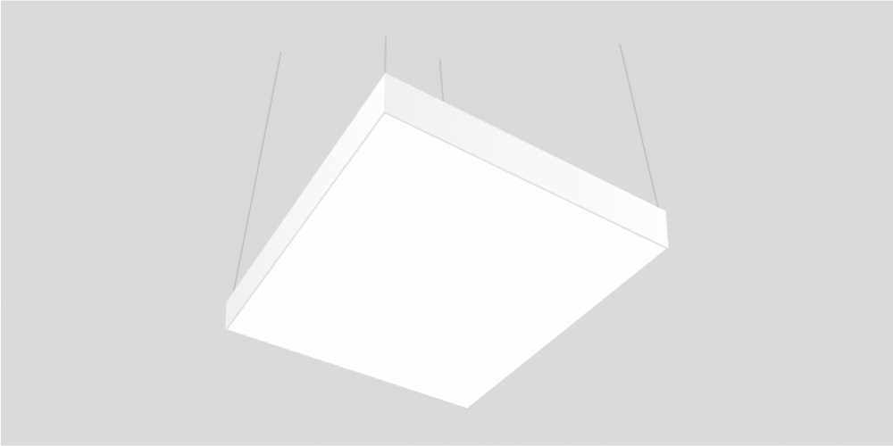Светодиодный светильник в виде квадрата LiNE-PRO мощностью 240 Вт и 1400 мм изготовлен из алюминиевого основания, с установленными на него светодиодными модулями. Возможна различная цветовая температура - 3000К, 4000К, 5000К, 6000К. Боковины могут быть изготовлены из плотного ПВХ различного цвета, на выбор или светотехнического акрила и выполнять функцию рассеивателя. Блок питания внутри корпуса светильника. Монтаж на тросовых подвесах или непосредственно к потолку или стене.