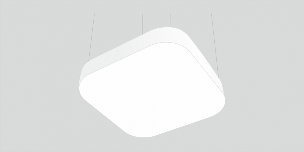 Светодиодный светильник в виде квадро LiNE-PRO мощностью 46 Вт и  500  мм изготовлен из алюминиевого основания, с установленными на него светодиодными модулями. Возможна различная цветовая температура - 3000К, 4000К, 5000К, 6000К. Боковины могут быть изготовлены из плотного ПВХ различного цвета, на выбор или светотехнического акрила и выполнять функцию рассеивателя. Блок питания внутри корпуса светильника. Монтаж на тросовых подвесах или непосредственно к потолку или стене.