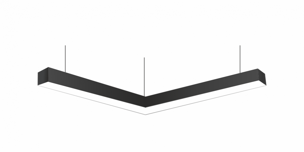 Светодиодный Угловой светильник LiNE-Pro 120гр. 500х500mm 40W 4000K черный предназначен для накладного или подвесного монтажа на тросовые подвесы. Изготовлен из сплошного сварного алюминиевого профиля в виде угла под 120 градусов. Высота установки светильника регулируется подвесом с цанговым тросовым зажимом и может варьироваться от 0,05 метра до 4 метров от основного потолка. Светильник имеет равномерную засветку по всей площади рассеивателя. Источник питания находится внутри корпуса. Торцевые заглушки входят в комплект. Возможно изготовление светильника с магистральной проводкой для соединения нескольких светильников в сплошную конструкцию.