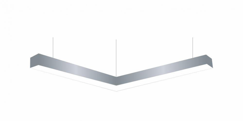 Светодиодный Угловой светильник LiNE-Pro 120гр. 750х750mm 30W 4000K серый предназначен для накладного или подвесного монтажа на тросовые подвесы. Изготовлен из сплошного сварного алюминиевого профиля в виде угла под 120 градусов. Высота установки светильника регулируется подвесом с цанговым тросовым зажимом и может варьироваться от 0,05 метра до 4 метров от основного потолка. Светильник имеет равномерную засветку по всей площади рассеивателя. Источник питания находится внутри корпуса. Торцевые заглушки входят в комплект. Возможно изготовление светильника с магистральной проводкой для соединения нескольких светильников в сплошную конструкцию.