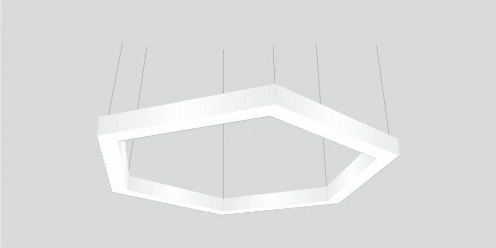 Светодиодный Шестиугольный светильник LiNE-Pro 6х500mm 110W 4000K белый предназначен для накладного или подвесного монтажа на тросовые подвесы. Изготовлен из сплошного сварного алюминиевого профиля в виде шестиугольника. Высота установки светильника регулируется подвесом с цанговым тросовым зажимом и может варьироваться от 0,05 метра до 4 метров от основного потолка. Шестиугольный линейный светильник имеет равномерную засветку по всей площади рассеивателя. Источник питания находится внутри корпуса.