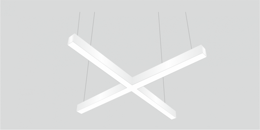 Светодиодный Лучевой светильник LiNE-Pro 4х500mm 80W 3000K белый предназначен для накладного или подвесного монтажа на тросовые подвесы. Изготовлен из сплошного сварного алюминиевого профиля в виде буквы «Х» (крестом). Высота установки светильника регулируется подвесом с цанговым тросовым зажимом и может варьироваться от 0,05 метра до 4 метров от основного потолка. Крестовой светильник имеет равномерную засветку по всей площади рассеивателя. Источник питания находится внутри корпуса. Торцевые заглушки входят в комплект. Возможно изготовление светильника с магистральной проводкой для соединения нескольких светильников в сплошную конструкцию.