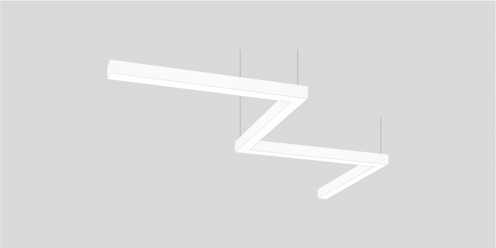 Фигурный светодиодный Светильник Зигзаг LiNE-Pro 4х500mm 80W 4000K белый предназначен для накладного или подвесного монтажа на тросовые подвесы. Изготовлен из сплошного сварного алюминиевого профиля в виде зигзага. Высота установки светильника регулируется подвесом с цанговым тросовым зажимом и может варьироваться от 0,05 метра до 4 метров от основного потолка. Светильник Зигзаг имеет равномерную засветку по всей площади рассеивателя. Источник питания находится внутри корпуса. Торцевые заглушки входят в комплект. Возможно изготовление светильника с магистральной проводкой для соединения нескольких светильников в сплошную конструкцию