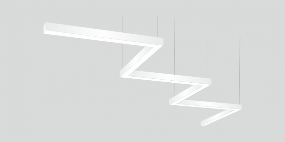 Фигурный светодиодный Светильник Зигзаг LiNE-Pro 6х500mm 120W 5000K белый предназначен для накладного или подвесного монтажа на тросовые подвесы. Изготовлен из сплошного сварного алюминиевого профиля в виде зигзага. Высота установки светильника регулируется подвесом с цанговым тросовым зажимом и может варьироваться от 0,05 метра до 4 метров от основного потолка. Светильник Зигзаг имеет равномерную засветку по всей площади рассеивателя. Источник питания находится внутри корпуса. Торцевые заглушки входят в комплект. Возможно изготовление светильника с магистральной проводкой для соединения нескольких светильников в сплошную конструкцию