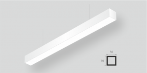 Линейный светодиодный Подвесной светильник LiNE-Pro 50x50 2000mm 60W 5000K Белый предназначен для подвесного монтажа на тросовые подвесы. Изготовлен из алюминиевого профиля длиной 2000 мм, мощностью 60 Вт c цветовой температурой 5000 K, цвет корпуса Белый. Высота установки светильника регулируется подвесом с цанговым тросовым зажимом и может варьироваться от 0,05 метра до 4 метров от основного потолка. Линейный светильник может использоваться для реечных потолков. Светильник имеет равномерную засветку по всей площади рассеивателя. Источник питания находится внутри корпуса. Торцевые заглушки входят в комплект.
