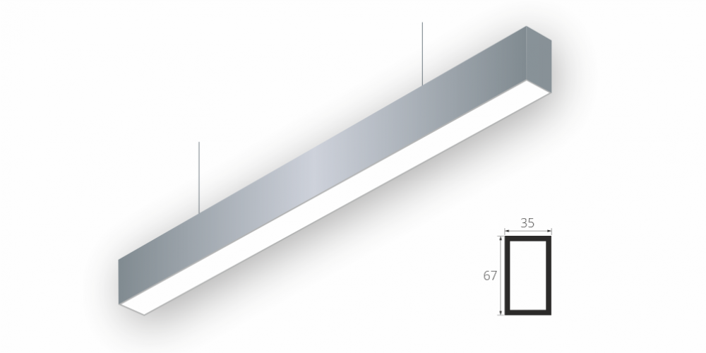 Линейный светодиодный Подвесной светильник LiNE-Pro 67x35 1200mm 40W 6000K Серый предназначен для подвесного монтажа на тросовые подвесы. Изготовлен из алюминиевого профиля длиной 1200 мм, мощностью 40 Вт c цветовой температурой 6000 K, цвет корпуса Серый. Высота установки светильника регулируется подвесом с цанговым тросовым зажимом и может варьироваться от 0,05 метра до 4 метров от основного потолка. Линейный светильник может использоваться для реечных потолков. Светильник имеет равномерную засветку по всей площади рассеивателя. Источник питания находится внутри корпуса. Торцевые заглушки входят в комплект.