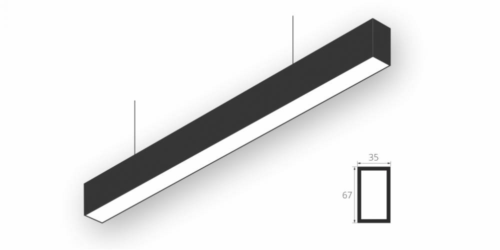Линейный светодиодный Подвесной светильник LiNE-Pro 67x35 1250mm 57W 5000K Черный предназначен для подвесного монтажа на тросовые подвесы. Изготовлен из алюминиевого профиля длиной 1250 мм, мощностью 57 Вт c цветовой температурой 5000 K, цвет корпуса Черный. Высота установки светильника регулируется подвесом с цанговым тросовым зажимом и может варьироваться от 0,05 метра до 4 метров от основного потолка. Линейный светильник может использоваться для реечных потолков. Светильник имеет равномерную засветку по всей площади рассеивателя. Источник питания находится внутри корпуса. Торцевые заглушки входят в комплект.