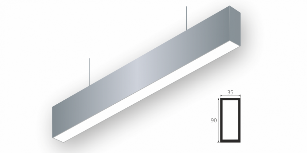 Линейный светодиодный Линейный светодиодный светильник LiNE-Pro 90x35 1200mm 40W 3000K Серый предназначен для подвесного монтажа на тросовые подвесы. Изготовлен из алюминиевого профиля длиной 1200 мм, мощностью 40 Вт c цветовой температурой 3000 K, цвет корпуса Серый. Высота установки светильника регулируется подвесом с цанговым тросовым зажимом и может варьироваться от 0,05 метра до 4 метров от основного потолка. Линейный светильник может использоваться для реечных потолков. Светильник имеет равномерную засветку по всей площади рассеивателя. Источник питания находится внутри корпуса. Торцевые заглушки входят в комплект.